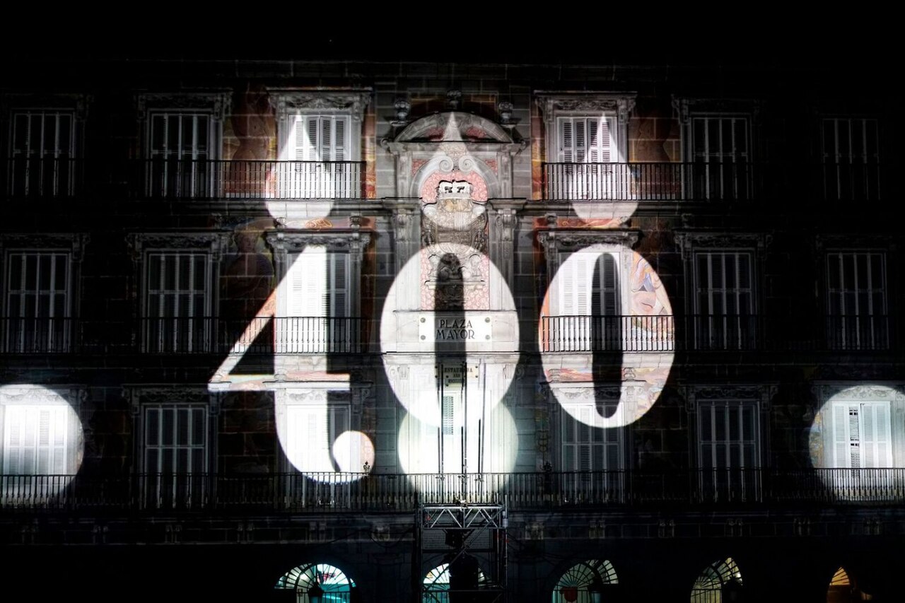 Nicht die Skulptur im Workshop, aber so sieht Videomapping aus 😉 Bild von Diario de Madrid CC BY 4.0, via Wikimedia Commons
